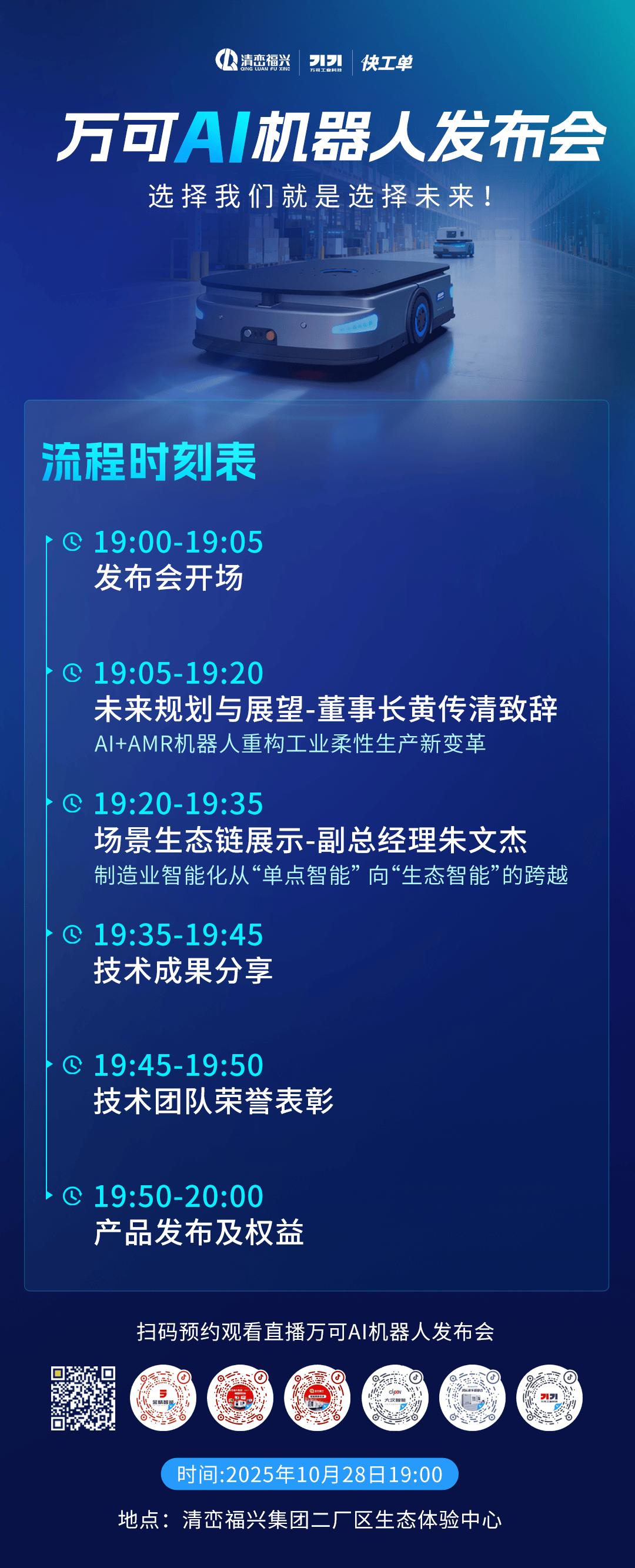 当工业物流还正在被人工搬运成本高企、设备续航短板、错发漏发返工等痛点搅扰时,一场关于“全流程从动化”的已悄悄到临。2025年10月28日19!00,万可工业科技(山东)无限公司沉磅举办万可AMR智能机械人发布会,正式揭开这款凝结立异科技取行业洞察的智能设备面纱。发布会现场,成为全场核心,为工业范畴带来了拥抱将来的全新可能。
